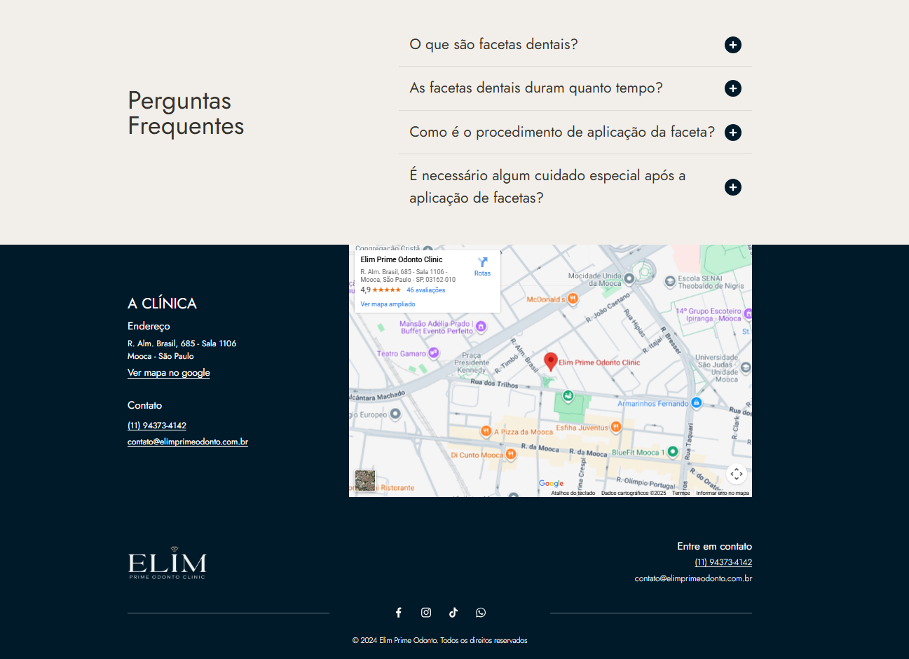 Cliente: Elim Prime Odonto — clínica odontológica especializada em estética dental, focada em facetas de resina e correções de formato, cor, alinhamento e restauração estética do sorriso.