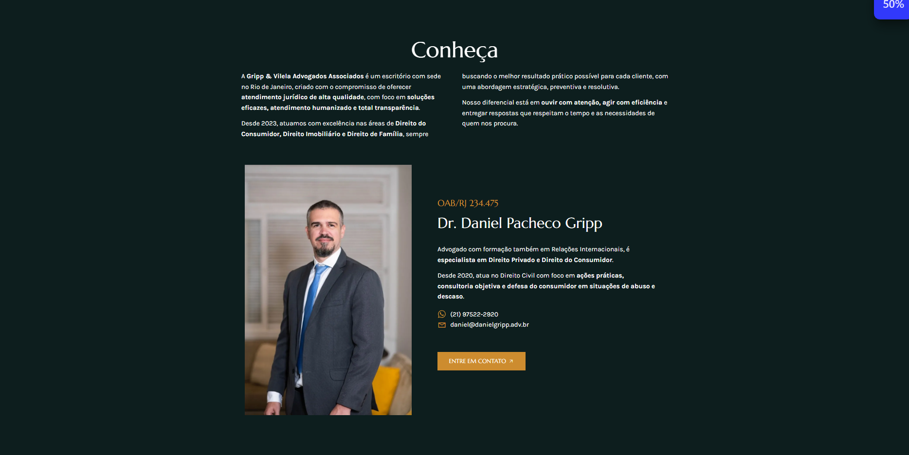 Cliente: Gripp & Vilela Advogados Associados — escritório jurídico sediado no Rio de Janeiro, com atuação em Direito do Consumidor, Família, Imobiliário, Contratual e Executivo.