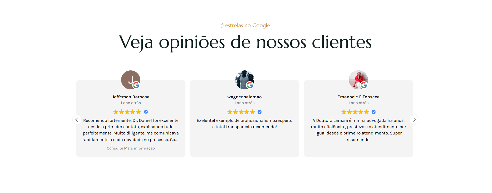 Mesmo escritórios pequenos ou recém-fundados podem causar impacto forte com um site que combine autoridade visível (avaliações, credenciais), linguagem próxima, e contato facilitado.